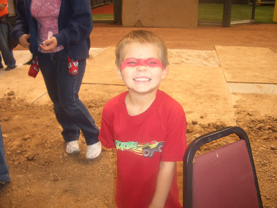 The Boys got their faces painted. This is Outlaw's sign. Titan is an Outlaw fan!